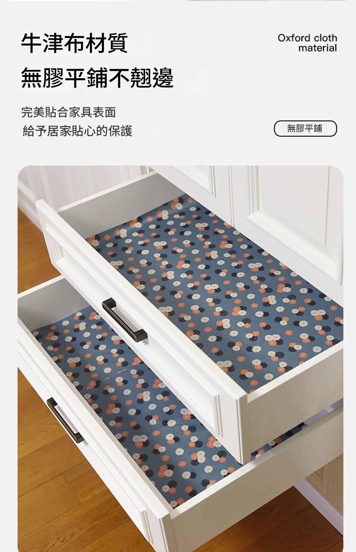 25分鐘前抽屜墊衣櫃墊布家用廚房鋪紙櫥櫃墊紙防水防潮櫃子鞋櫃加厚防潮墊 - 5入組 NT$599【最多客戶選擇】
