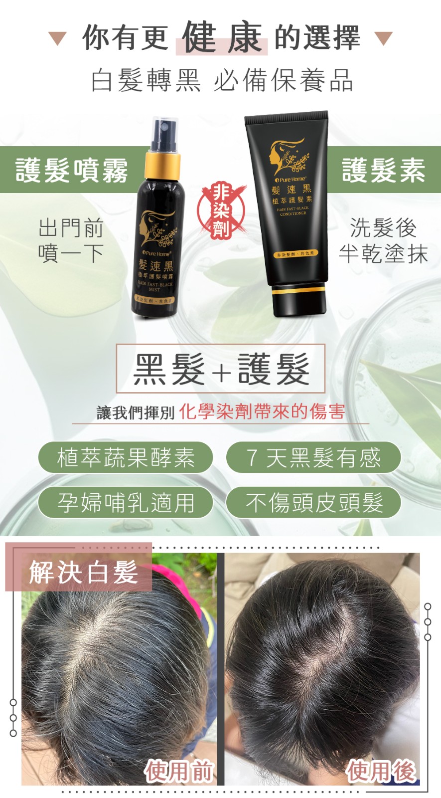 4分鐘前買一送一【日本熱銷】你有白髮煩惱嗎?快來試試一噴一抹就黑髮 全新第五代髪速黑 植萃護髮素噴霧+植萃護髮素 - 【限量專賣】買一送一·2入組-NT$999 【植萃護髮噴霧+植萃護髮素】