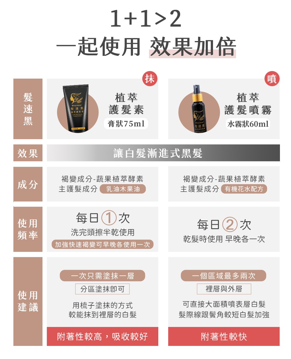 半小時前買一送一【日本熱銷】你有白髮煩惱嗎?快來試試一噴一抹就黑髮 全新第五代髪速黑 植萃護髮素噴霧+植萃護髮素 - 【限量專賣】買一送一·2入組-NT$999 【植萃護髮噴霧+植萃護髮素】