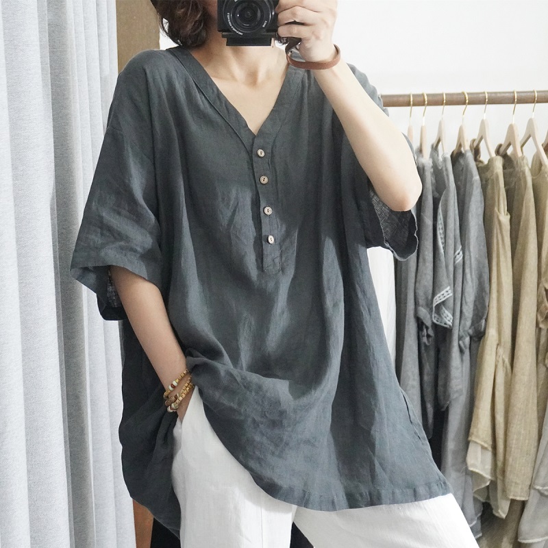 25分鐘前【買一送一】時尚寬鬆純棉文藝復古半袖上衣~遮肉顯瘦,舒適材質,柔軟親膚透氣,適合當季! - 精選三入 均價422/件!三色全入! NT$ 1268